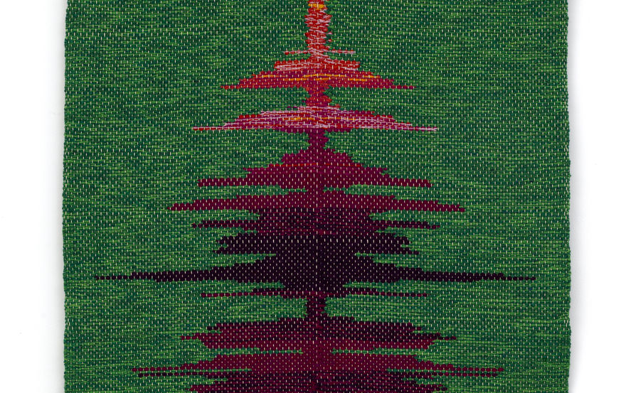 Transformed by Fawzia Khan explores her spirituality, looking for answers to the imponderable questions of existence, a moral framework for human interactions that emphasizes every person's inherent worth and dignity. Khan highlights how this exploration must be embedded in community, a space that welcomes understanding, not judgment. Transformed is a series of loom-woven Jainamaaz (prayer rugs), inspired by her Muslim upbringing but updated to reflect her current humanist outlook. She recorded herself reciting words of wisdom from poetry and other writings, both ancient and contemporary, that explore the human condition, and are meaningful to her. She then wove the image of her voiceprint into each rug. The installation will include her audio recordings so viewers can see and feel her words. The meaning and origin of each reading guided her selection of colors and their transitions.